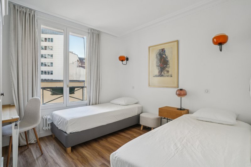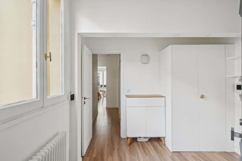 Il se compose d'une entrée ouvrant sur une vaste pièce de vie, de trois chambres calmes dont une master room de 22 m², d'une cuisine entièrement équipée, d'une salle de bains et de toilettes séparées et ascenseur. Le plan est rationnel, sans perte d'espace, et la belle hauteur sous plafond confère une agréable sensation d'air et de confort, propre au quartier.