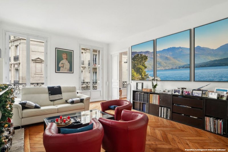 Engel & Völkers vous propose, dans un élégant immeuble haussmannien parfaitement entretenu, cet appartement de 78 m² qui se distingue par son charme classique et ses volumes généreux. L'entrée conduit à un vaste espace de réception composé d'un double séjour de 25 m² agrémenté d'une cheminée, offrant une atmosphère chaleureuse et conviviale. La salle à manger attenante de 13 m² et la cuisine séparée de 8 m² permettent une circulation fluide et un agencement fonctionnel.