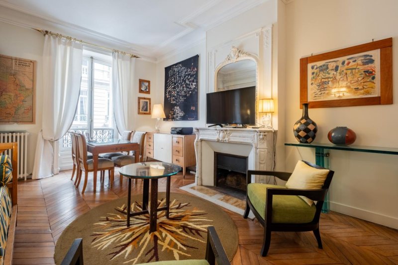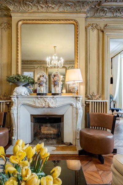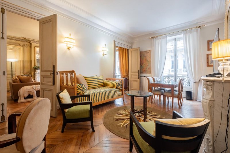 Paris 75008 - Triangle d'Or - Niché dans un secteur très prisé de la capitale, dans un bel immeuble style Haussmannien de standing, un charmant appartement au 1er étage avec ascenseur.