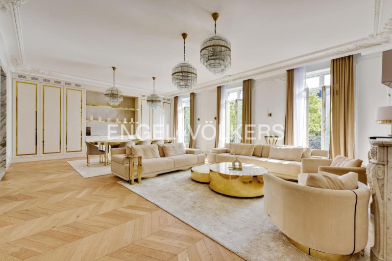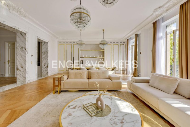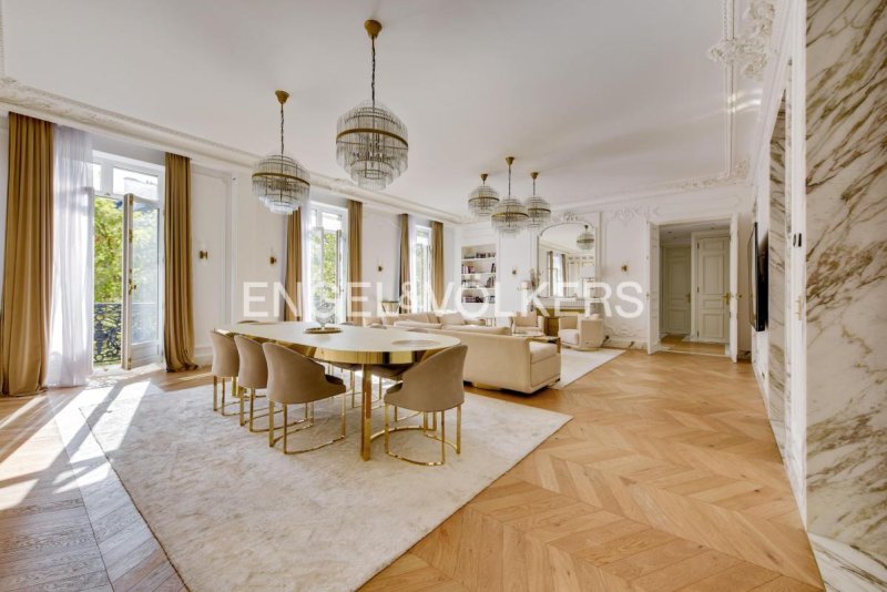 Idéalement situé à deux pas du parc Monceau et de la très prisée rue du Faubourg Saint-Honoré, ce remarquable appartement de 196,72 m² (loi Carrez) prend place au 3 ème étage d'un superbe immeuble haussmannien de grand standing, sécurisé, avec concierge et ascenseur. Entièrement rénové et meublé avec des prestations de haute qualité, ce bien rare offre une alliance parfaite entre le charme de l'ancien et le confort contemporain.