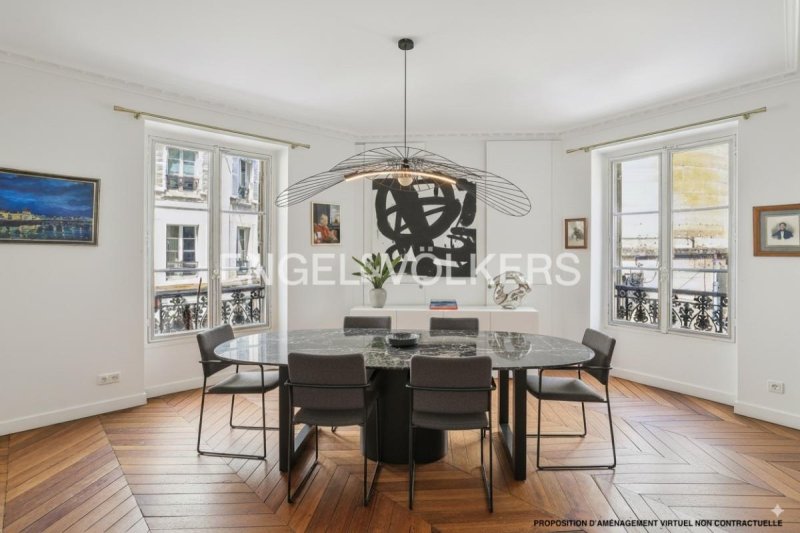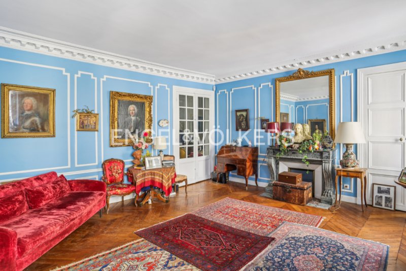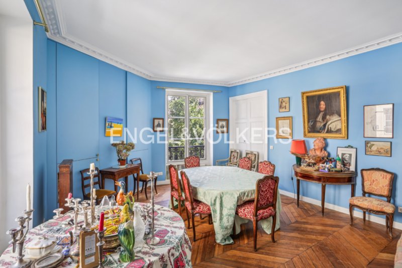 Engel & Völkers vous propose à la vente, dans un immeuble en pierre de taille datant de 1840 aux parties communes élégantes et sécurisé par la présence d'une gardienne à demeure, ce bel appartement de 144,05 m² Loi Carrez (148,57 m² au sol), qui vous séduira par son cachet ancien et ses volumes généreux.
