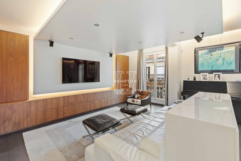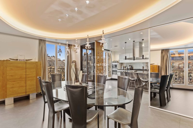 PARIS VIII o BOULEVARD HAUSSMANN MIROMESNIL | APPARTEMENT AU CALME AVEC BALCON FILANT ET CLIMATISATION L'agence Hempton Paris Trocadero vous propose, au 5ème étage d'un immeuble de 1870 situé entre le parc Monceau et la place Saint-Augustin, un bel appartement familial d'environ 212m2 entièrement rénové et parfaitement calme (isolation et double vitrage). Il se compose d'une élégante entrée, d'un grand double séjour, d'une salle à manger, d'une belle cuisine équipée de matériaux haut de gamme, d'une suite parentale avec grand dressing, une salle de douche et un hammam, ainsi que de deux chambres dont une avec un dressing, deux salles de douche, d'une buanderie et de 2 toilettes indépendants. Il bénéficie d'un balcon filant, d'une vue dégagée et de la climatisation. Une cave complète ce bien magnifiquement refait avec des matériaux de qualité. Bien soumis au régime de la copropriété. Honoraires à la charge du vendeur. Nombre total de lots : 67