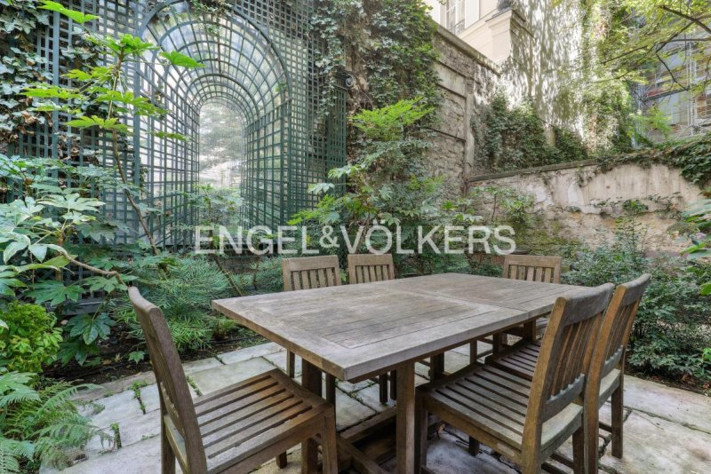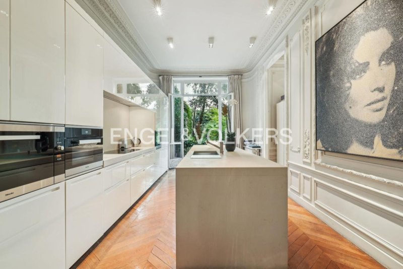 Pensé par un architecte, ce bien conjugue l'élégance haussmannienne à un art de vivre contemporain. Dès l'entrée, les volumes impressionnent : 3,50 m de hauteur sous plafond, un vaste salon de réception baigné de lumière, une cuisine dînatoire indépendante, et un accès direct à un jardin à la végétation soignée, orné d'une terrasse et de plusieurs espaces pour recevoir en extérieur.