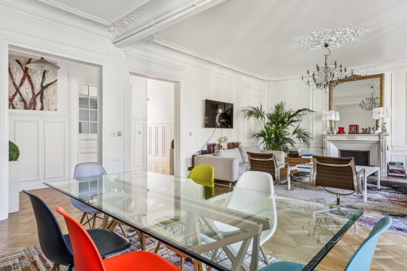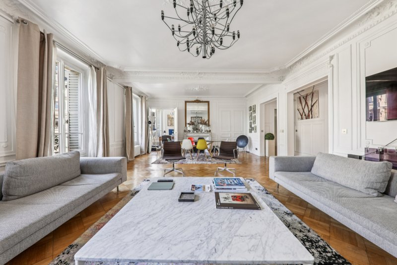 Appartement d'angle traversant de 172 m² bien disposé de style haussmannien parquets-moulures-cheminées avec belle hauteur sous plafond de 3m, sans vis-à-vis et en parfait état comprenant : une galerie d'entrée, un beau double séjour orienté Ouest, trois chambres , bureau, salle d'eau, cuisine aménagée et équipée, toilettes.