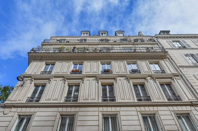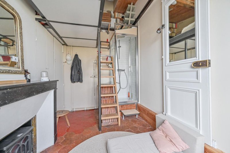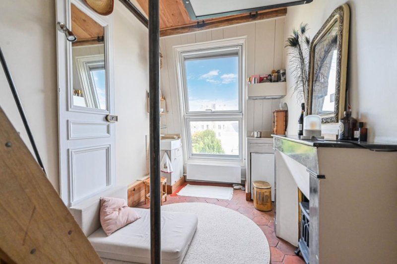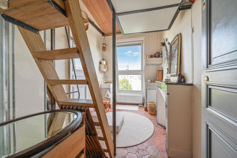 Studette lumineuse de 8m² (Loi Carrez) située au 6eme et dernier étage, avec ascenseur, dans une belle copropriété ancienne et bien entretenue.