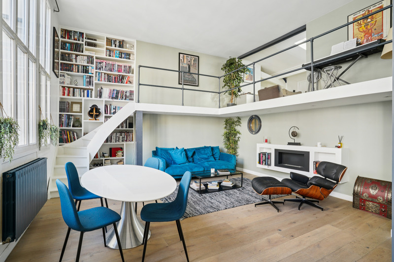 Vous serez séduit par son atmosphère accueillante et sereine. Hauteur sous plafond de 3,85 m, large baie vitrée, parquet massif, cheminée à l'éthanol, bibliothèques sur mesure... confèrent à l'ensemble une élégance inégalée. Prestations de qualité et ambiance chic et fonctionnelle font de ce duplex un lieu 'unique'.