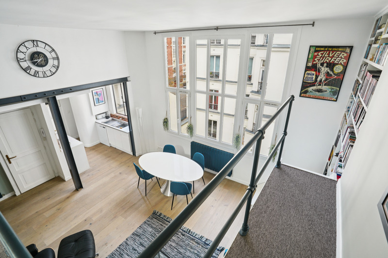 Au coeur du 9ème arrondissement, Engel & Völkers vous propose un beau duplex 'atelier d'artiste' de standing. Au 4ème et dernier étage par escalier, seul à l'étage, il bénéficie de 4 pièces d'une surface totale de 101,6 m² au sol (86,4 m² Loi Carrez). En parfait état, son espace de vie spacieux offre un vaste séjour baigné de lumière naturelle, prolongé par une mezzanine aménageable en bureau, salon cinéma ou 3ème chambre, une cuisine ouverte équipée, deux chambres, une salle de bains...