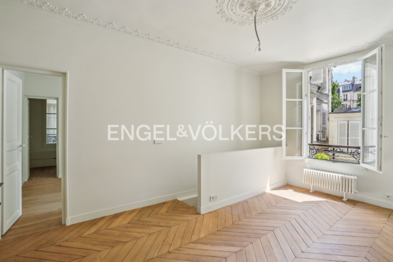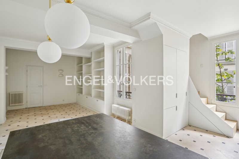 À deux pas de la place de Clichy, au rez-de-chaussée et premier étage d'une copropriété calme, Engel & Völkers vous invite à découvrir ce beau duplex de 93,28m² entièrement rénové par un architecte.