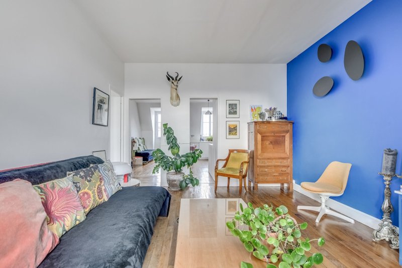 Dans un immeuble de standing en pierres de taille, sécurisé avec gardien, se situe un magnifique appartement traversant de 50,50m² au 7ème et avant-dernier étage par escaliers.