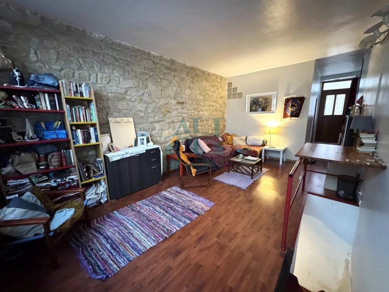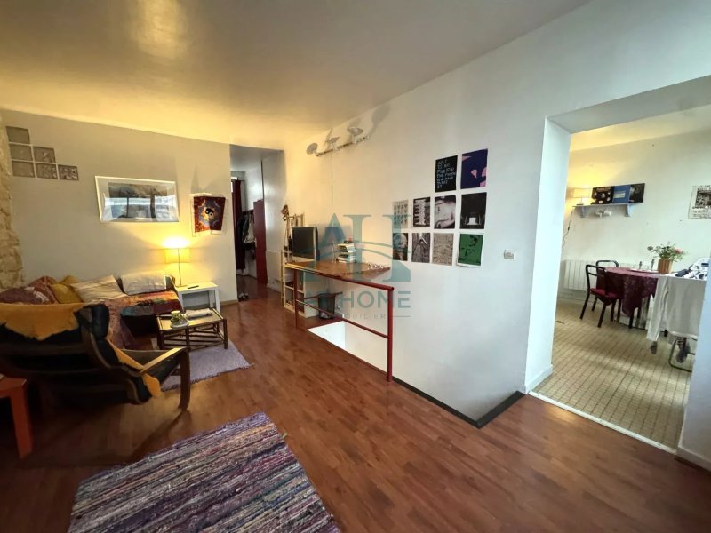 Le séjour offre un vrai cachet avec son mur en pierres apparentes. Il comprend également une cuisine séparée, une chambre double sur cour et une salle d’eau avec WC.