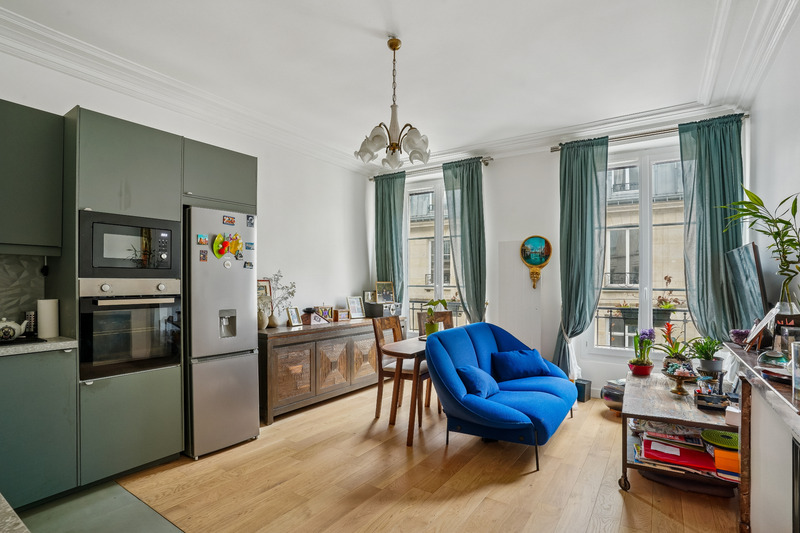 Au coeur du très recherché quartier Faubourg Poissonnière, à deux pas du Grand Rex et à la frontière immédiate du 9? arrondissement, ce grand deux-pièces de 54,25 m² Carrez (56,37 m² au sol) se situe au 2? étage d'un bel immeuble entretenu.