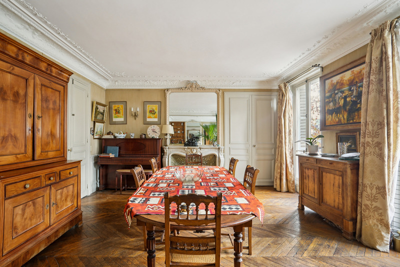 Cet appartement familial de 125 m², situé au deuxième étage avec ascenseur d'une belle copropriété haussmannienne, séduit par son cachet de l'ancien et ses volumes généreux. Il offre un double séjour spacieux, trois chambres aux belles superficies avec ses deux salles de bains, un parquet en chevrons, des moulures au plafond et une distribution harmonieuse. L'ensemble présente un fort potentiel d'aménagement, des travaux de rafraîchissement étant à prévoir afin de révéler pleinement le caractère et l'élégance de ce bien. Une cave complète l'appartement.