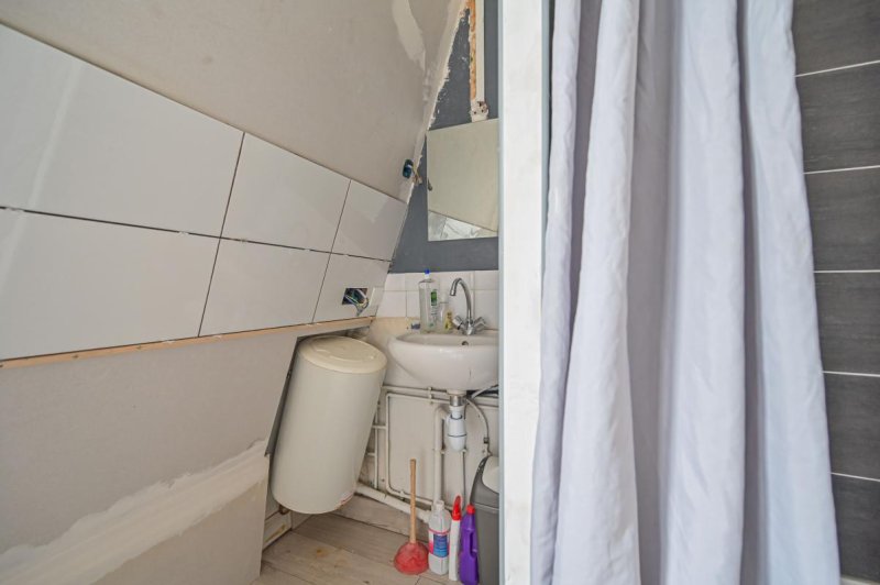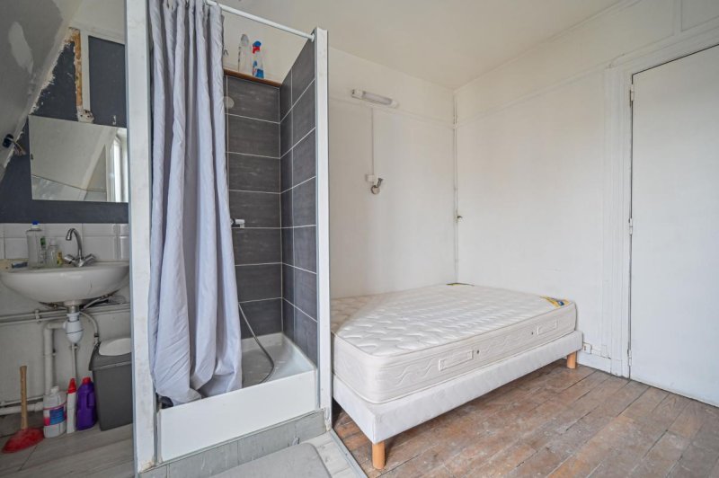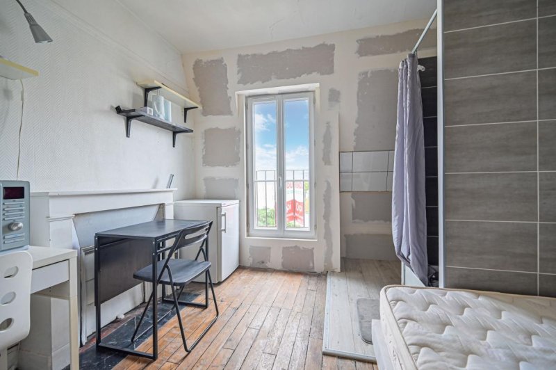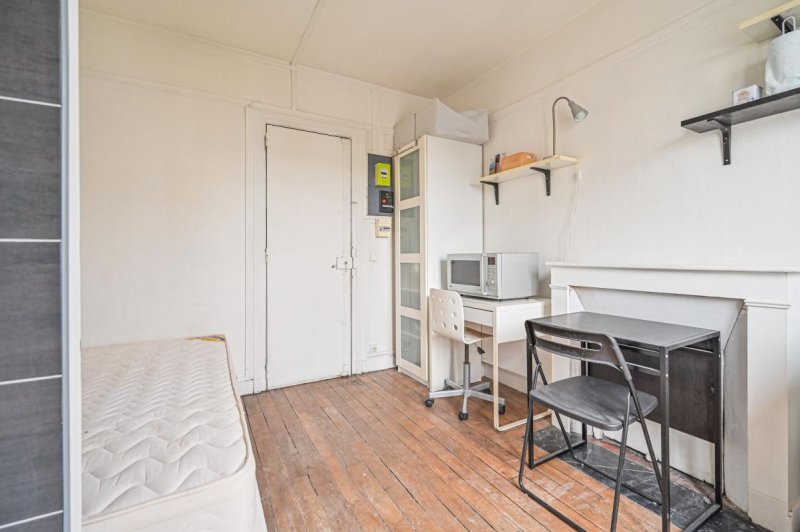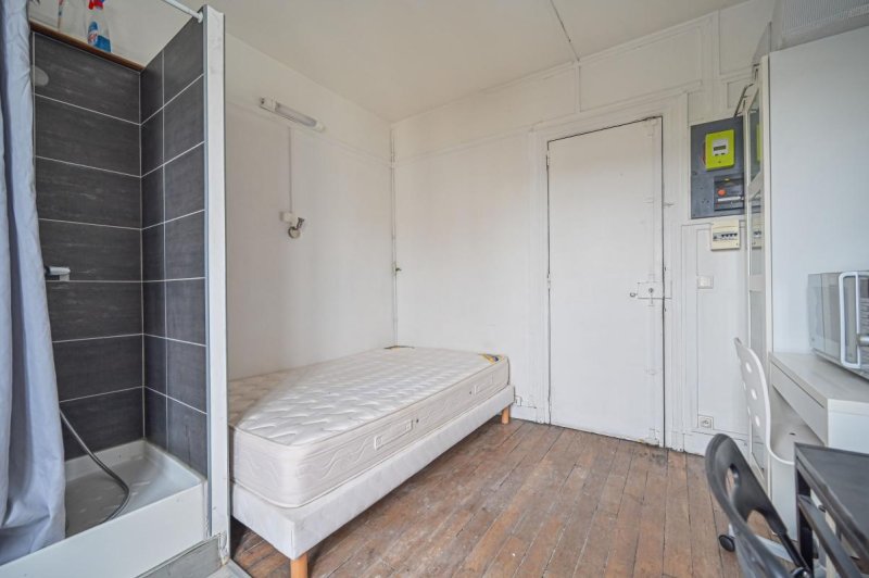 Exposée plein EST, cette studette bénéficie d'une vue dégagée avec un balconnet, et d'une belle hauteur sous plafond de 2,60 m, offrant une vraie sensation d'espace, et permettant l'installation d'un lit escamotable. Elle comprend un espace de vie, un évier et une douche. Accès aux WC communs en face sur le palier.