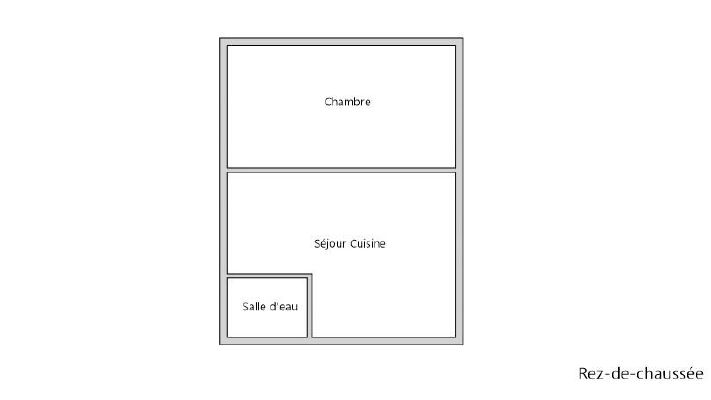 L'appartement se compose comme suit : une entrée ouvrant sur une grande pièce de vie avec cuisine ouverte, une chambre, ainsi qu'une salle d'eau avec WC.
