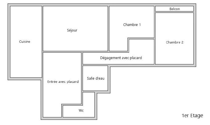 Situé au 1er étage (ascenseur), il se compose d'une entrée avec placards, une cuisine (12m²) pouvant être ouverte sur le séjour (19m²), 2 chambres (11.4m² et 13.8m²), une salle d'eau avec WC et un second WC séparé.