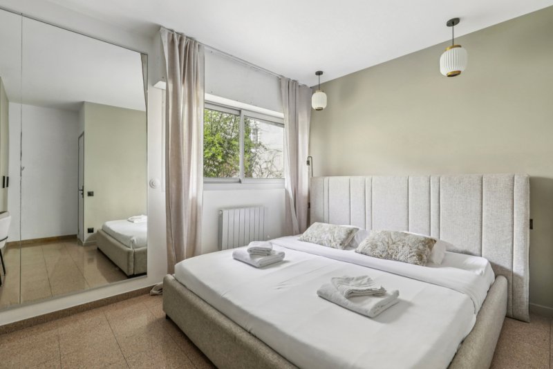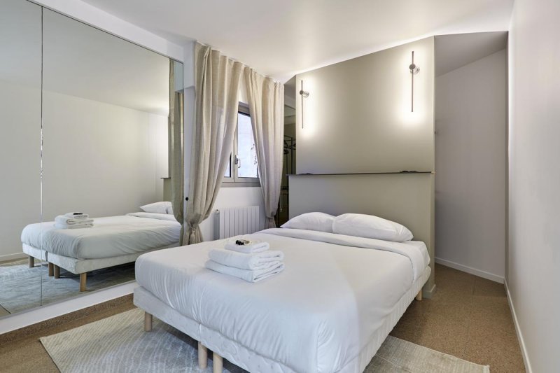 Investisseur ou famille nombreuse ! Découvrez cet appartement de 95m² situé au coeur de Paris, au rez-de-chaussée avec DP hébergement hôtelier. Construit dans les années 90, ce bien rare propose 5 pièces spacieuses, 3 chambres et 2 salles de bains, dont une suite parentale ; parfait pour une vie urbaine raffinée. Une alcôve aménagée d'un quatrième lit double King size permet d'accueillir jusqu'à huit personnes.