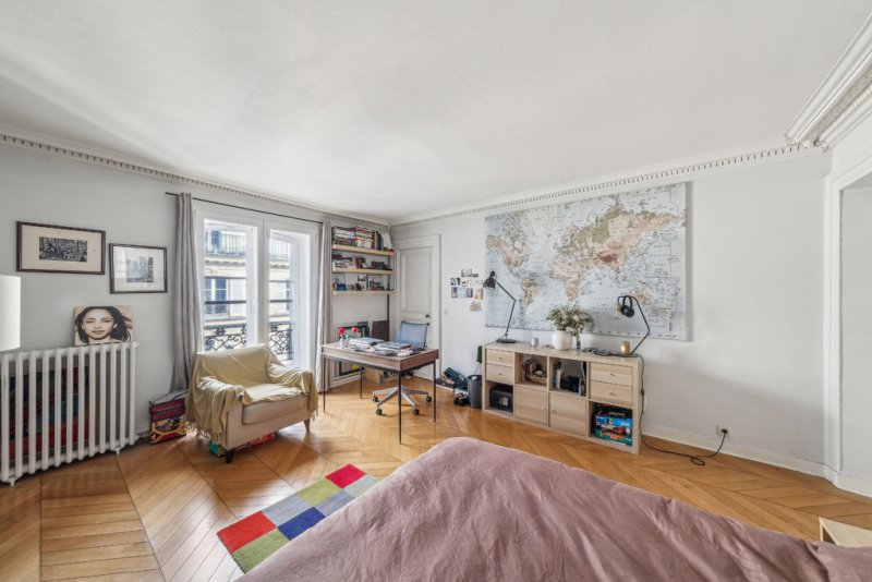 Côté nuit, les trois chambres spacieuses confortables et calmes donnent directement sur un square piétonniers. L'appartement dispose d'une grande salle de bain et de toilettes séparées. Il est possible de créer une salle d'eau supplémentaire. Chauffage individuel au Gaz piloté par une chaudière récente.