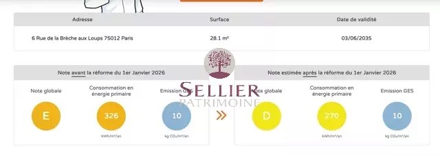 Studio de 28,05 m² · 1er/3 · Quartier Picpus (Paris 12) passera en D avec la conversion DPE au 1 er Janvier 2026