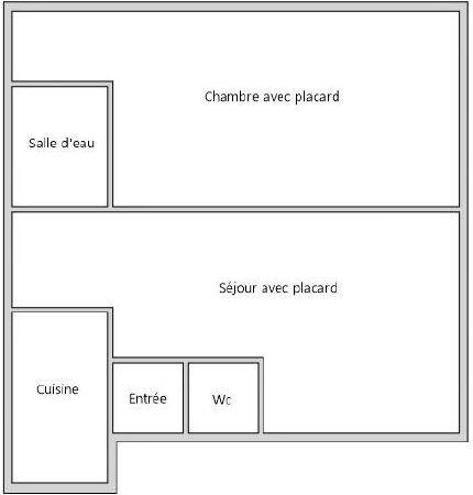 Il profite d'un plan particulièrement agréable et sans aucune perte de place : entrée, WC séparé, cuisine indépendante (possibilité US), séjour spacieux (19m²), grande chambre avec placard (12.4m²) et une salle d'eau.