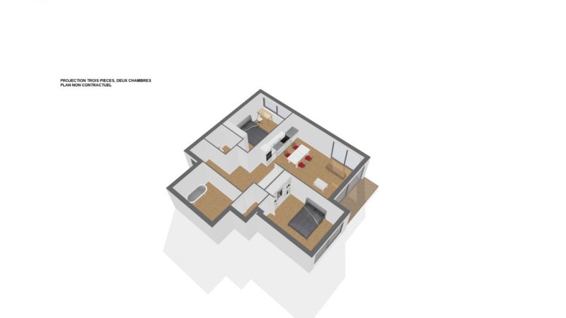 Actuellement configuré en 2 pièces, il est facilement transformable en 3 pièces (aucun mur porteur).