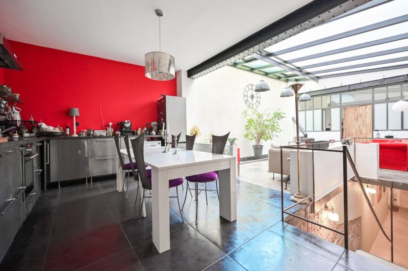 Situé dans un quartier recherché du 12e arrondissement, à proximité immédiate de toutes commodités et des transports, ce spacieux local de 220 m² offre un cadre de vie et de travail unique. Accessible directement par le hall de l'immeuble, ce bien rare conjugue volumes, cachet et fonctionnalité. Au premier niveau se trouve une pièce de vie de 63 m² baignée de lumière, comprenant une cuisine américaine équipée, une salle à manger, un salon avec poêle à bois, des WC indépendants et une chambre avec salle d'eau de 14m². Au niveau inférieur se trouve un dégagement accessible depuis le séjour par un escalier et délimite l'espace en deux parties. Un premier espace avec salon de 30m², un studio d'enregistrement insonorisé, des espaces de rangement, une suite parentale avec salle d'eau et et WC. Un second espace avec cette fois-ci 3 chambres éclairées par une lumière zénithale. Ce produit est un bien rare et polyvalent aux volumes exceptionnels. Idéal pour des bureaux, profession libérale, un atelier, ou une grande famille ! à découvrir sans tarder.