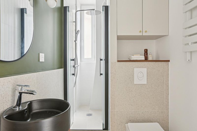 En rez-de-chaussée surélevé, il bénéficie de 2 pièces d'une surface de 32 m². Totalement rénové, son espace de vie offre un séjour lumineux, une cuisine indépendante totalement équipée, une chambre, une salle d'eau.