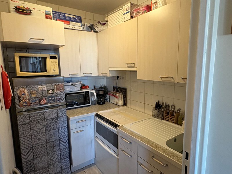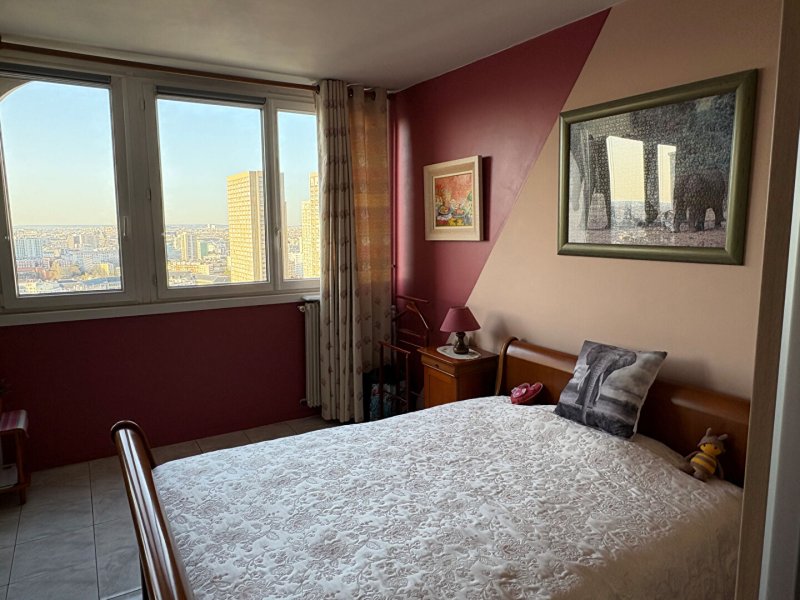 En étage élevé avec vue exceptionnelle sur Paris, 2 pièces de 42 m² environ comprenant une entrée avec rangements, séjour, cuisine aménagée, chambre, salle d'eau, WC, cave et parking en sous-sol .