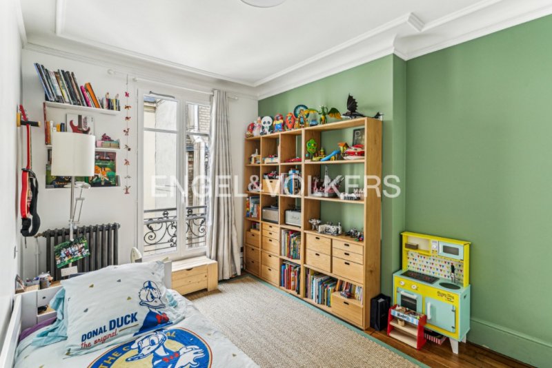 Au quatrième étage d'un immeuble de style haussmannien, appartement familial entièrement rénové situé à deux pas du Square Saint-Médard et de la célèbre rue Mouffetard.