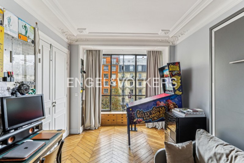 Le double séjour sur rue avec balcon offre un espace de vie idéal bénéficiant de prestations haut de gamme grâce à des rénovations récentes et des équipements high tech, et donne accès à la chambre sur rue et son bow-window. Côté cour, le couloir dessert une cuisine équipée, deux chambres spacieuses, une salle d'eau et des toilettes indépendantes. Cet appartement offre un plan optimisé et des volumes rares, grâce à une circulation fluide entre les différents espaces et de nombreux rangements intégrés.