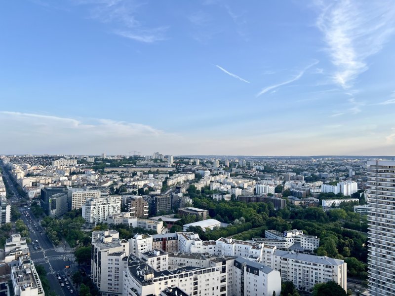 5-6 pièces 150m2 avec balcon-terrasse 20m2 vue Paris Ouest, Vues Panoramiques sud-ouest depuis toutes les pièces, piscine couverte au dernier étage avec solarium, gardien 24/7, immeuble IGH 1978, 33ème et avant dernier étage, appartement baigné de lumière et de soleil, entrée, double séjour 36m2 sur balcon Ouest 10m2, 3 chambres 14-14-10 m2 avec terrasse, bureau 13m2, belle cuisine dinatoire 17 m2 avec 2 terrasses, 2 sde, 2 wc, 2 dressings, cave, parking, appartement rénové en 2018, nombreux commerces de proximité, au pied des métros 14-07 Maison Blanche,
