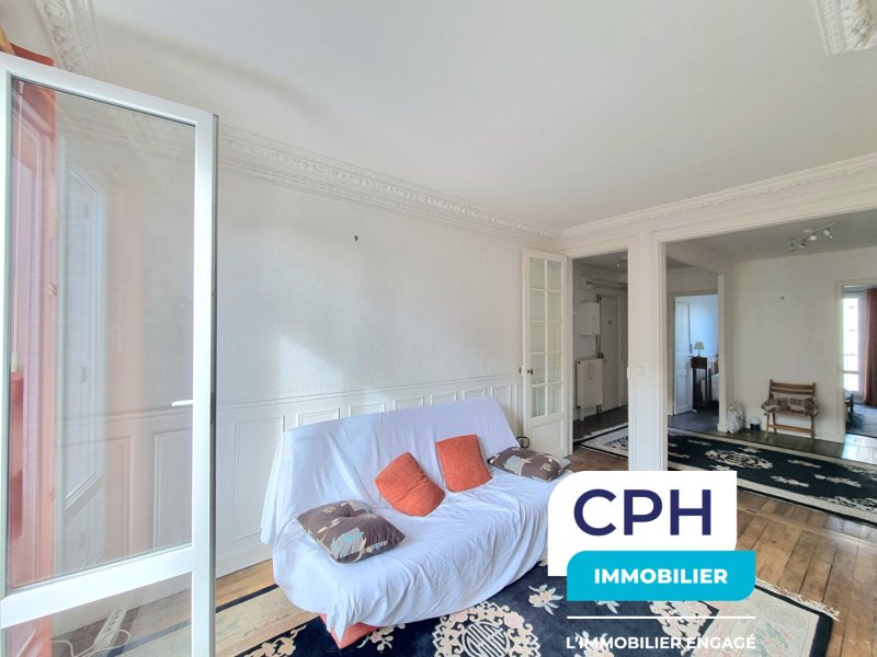 "Votre agence Immo de France / CPH Immobilier vous accueille téléphoniquement de 8h à 19h du lundi au samedi pour échanger sur vos projets immobiliers". Rare sur le marché, très bien situé, dans une rue discrète, la rue Marie-Rose, proche des commerces et des transports, métro "ALESIA", ligne 4 à 320 m. Au 6ème et avant dernier étage avec ascenseur, d'un immeuble ancien bien entretenu, vous trouverez cet appartement traversant, en très bon état général. D'une superficie de 48.44 m² " loi Carrez", très bien optimisé grâce à son plan en étoile. Il vous offre un séjour agréable avec une belle hauteur sous plafond, des moulures d'époque et sa cheminée, une cuisine aménagée, une chambre confortable, avec un deuxième balcon, au calme sur cour, un wc, une salle d'eau. Une cave en sous-sol. Baigné de lumière, exposé Sud -Ouest sur le séjour, prolongé d'un balcon et Est sur la chambre avec un 2ème balcon. Ne tardez pas à venir le visiter ! Montant des dépenses annuelles d'énergie pour un usage standard compris entre 620Euro et 870Euro/an. Prix moyens des énergies indexés sur les années 2021, 2022, 2023 (abonnements compris). Les informations sur les risques auxquels est exposé ce bien sont disponibles sur le site Géorisques. https://www.georisques.gouv.fr. Proposé par M. Cyrille RAVON CPH PARIS 5 REF : 226030