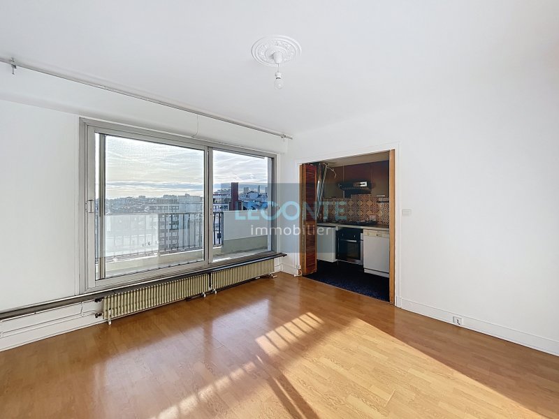 Exlusivité LECONTE Immobilier : Rue de la Sablière. En plein coeur du quartier Pernety à proximité immédiate des commerces et des transports, venez découvrir cet appartement bénéficiant d'une vue totalement dégagée et plein ciel. Situé au 8ème et dernier étage d'un immeuble de construction moderne et bien entretenu (ravalement voté) il comprend : une entrée avec rangements, un wc séparé, une salle de bains, un séjour avec cuisine ouverte et une chambre. Le tout donnant sur une grande terrasse de 14m2 exposée plein SUD avec vue totalement dégagée ! Prévoir des travaux de rénovation. Une cave complète ce bien.