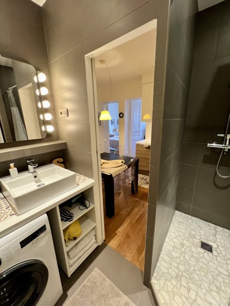 Quartier Didot Charmant 2/3 pièces de 39 m2, entièrement rénové par architecte, au 2eme étage avec ascenseur d'un bel immeuble ancien. Plan en étoile, séjour et chambre exposés sud, cuisine équipée dinatoire, salle d'eau avec fenêtre, WC séparés, dressing. Charme de l'ancien : parquet, moulures, cheminée. Appartement lumineux et traversant, exposé Sud, double vitrage. 2 caves Au pied des commerces et du marché, Tram T3 Didot à 3 min, métros lignes 13 et 4 à 5-10 min.