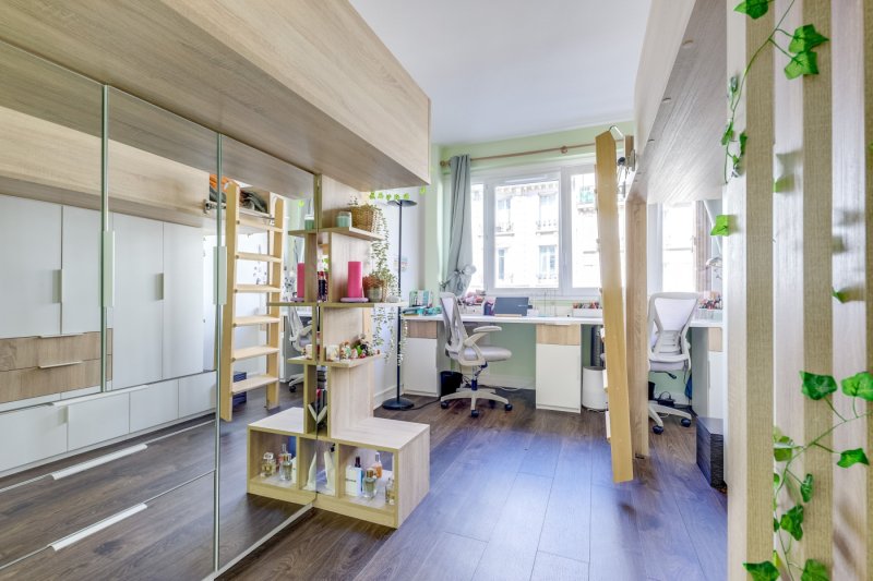 L'espace nuit, parfaitement séparé, se compose de deux belles chambres avec rangements sur mesure, idéales pour une vie de famille ou pour l'aménagement d'un bureau. Une élégante salle d'eau avec douche à l'italienne complète cet espace.