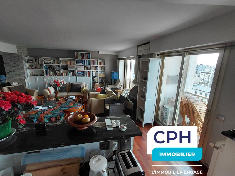 L'appartement se compose d'une entrée avec rangements, d'un vaste double séjour lumineux comprenant salon et salle à manger, ouvrant sur un balcon avec vue dégagée sur Paris. La cuisine aménagée et ouverte prolonge harmonieusement l'espace de vie.