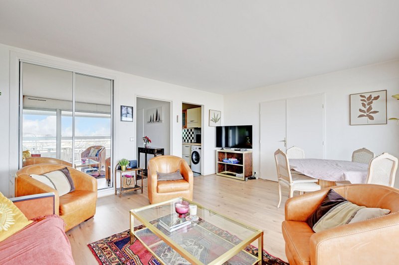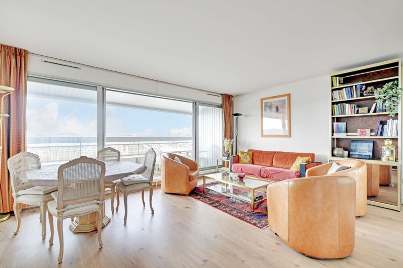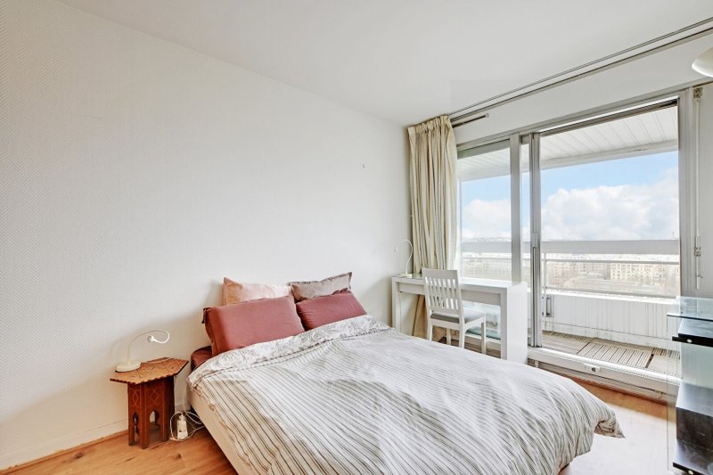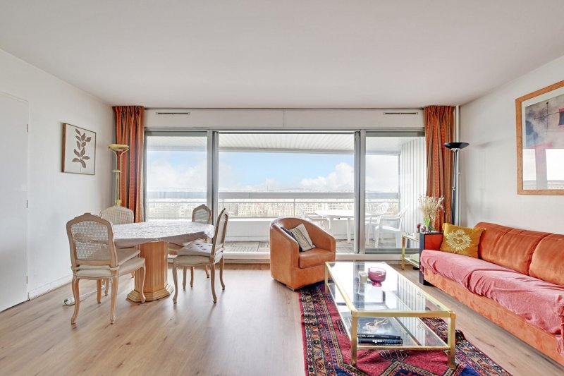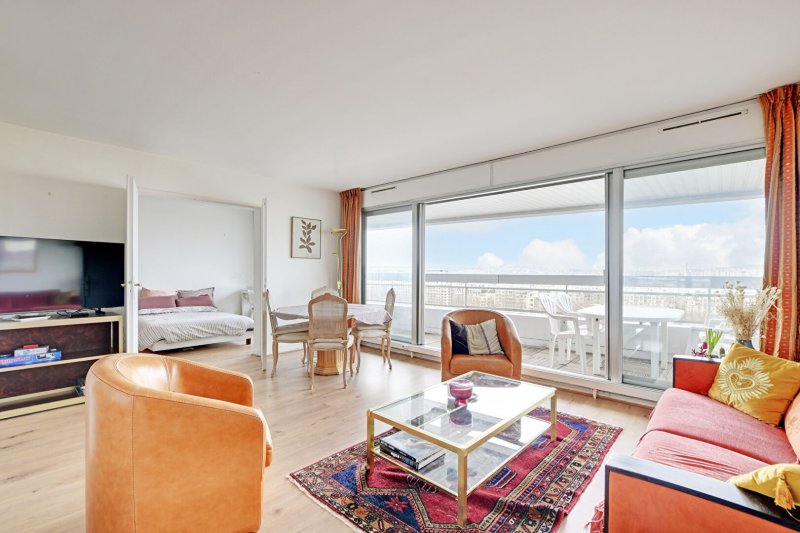 Dans une résidence de standing sécurisée avec gardien et agents de sécurité 24/7, bel appartement 2 pièces de 48,25m² situé au 14ème étage par ascenseur composé d'une entrée, d'un large séjour de 23m² très lumineux grâce à ses baies vitrées donnant sur un grand balcon de plus de 10m² exposé nord-ouest avec vue sur la Seine, une cuisine semi-ouverte équipée et ménagée avec de l'électro-ménager récent, une chambre avec rangements et accès au balcon et à une salle de bain, et WC séparés.