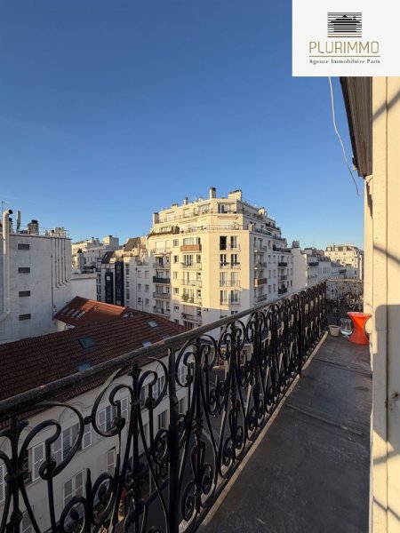 Paris 15ème - Rue du Commerce. Appartement traversant exposé est / ouest au 5ème étage d'une petite copropriété. Seul à l'étage, il se compose d'un séjour exposé ouest sur rue donnant sur un balcon filant avec vue dégagée, une cuisine séparée, deux chambres, une salle de bains, une salle de douche, wc. Plan modulable, calme et lumineux.
