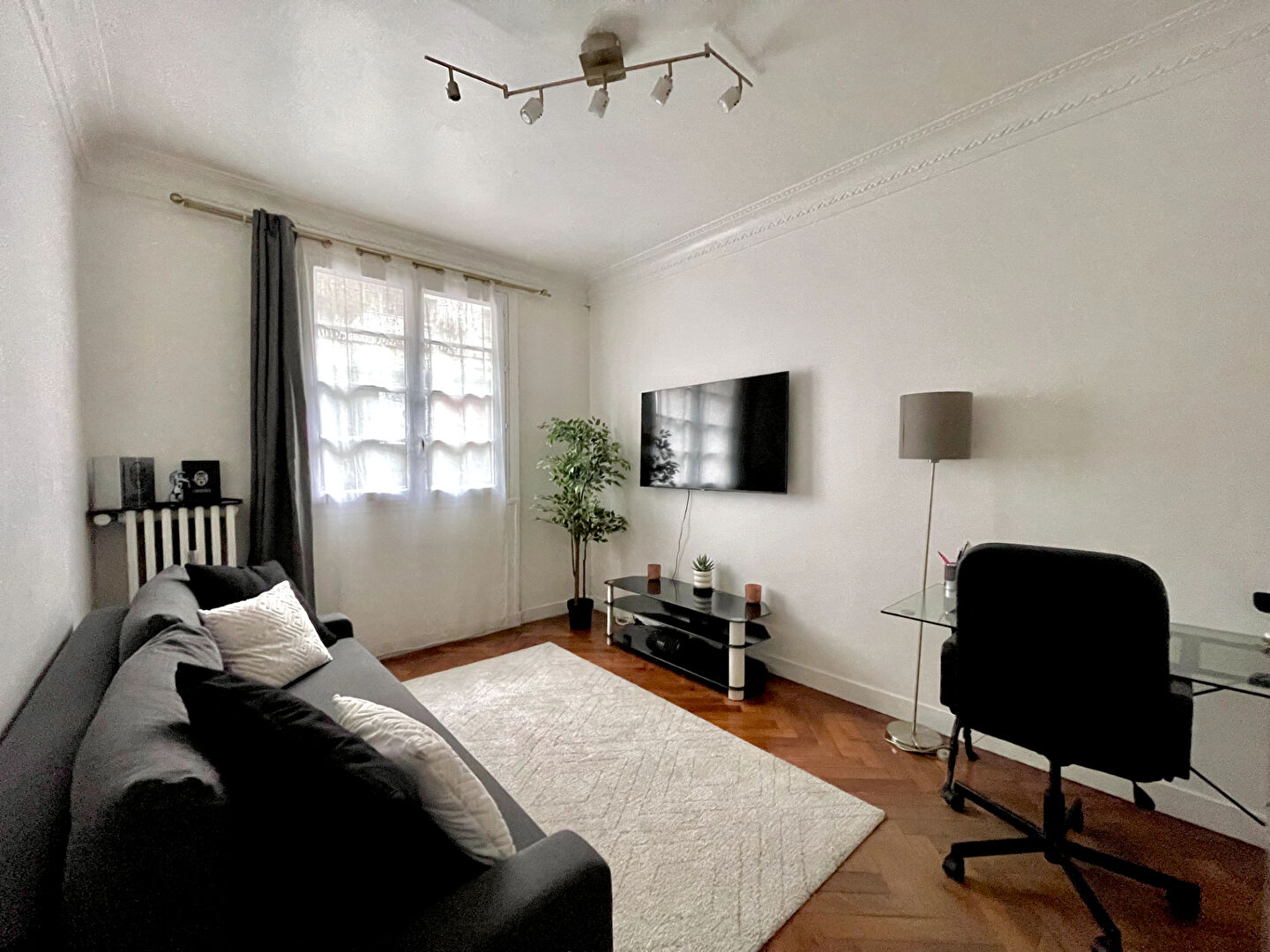 Une cave et une large place de parking (en concession avec fin bail 31/03/45) complètent ce bien.