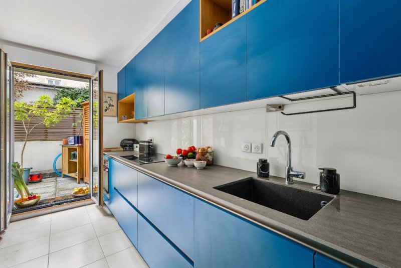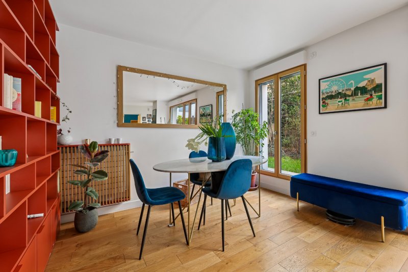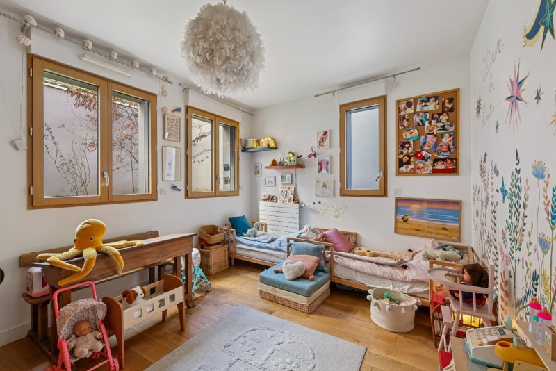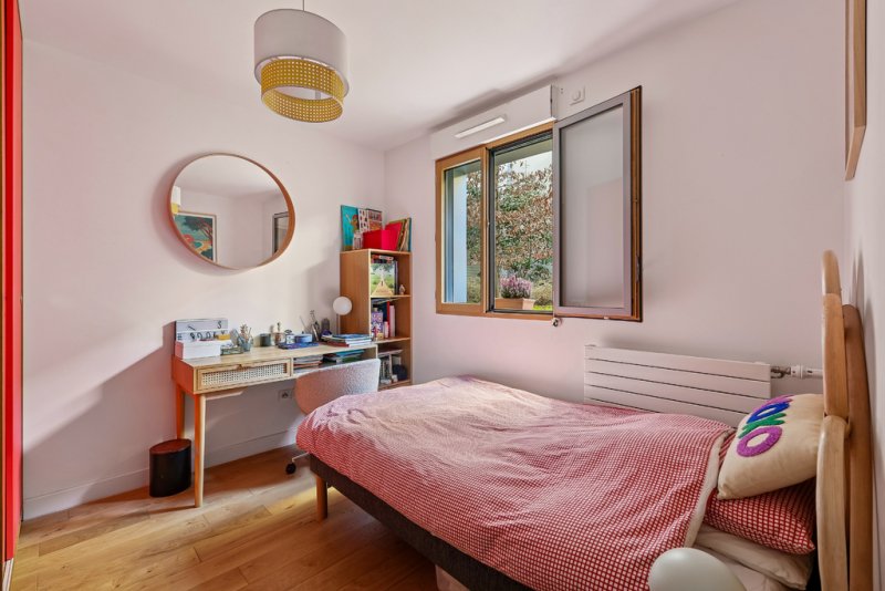 L'ensemble des pièces de cet appartement donnent sur le jardin privatif, arboré et fleuri, agrémenté aujourd'hui d'un bac à sable et toboggan.