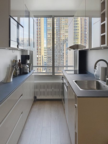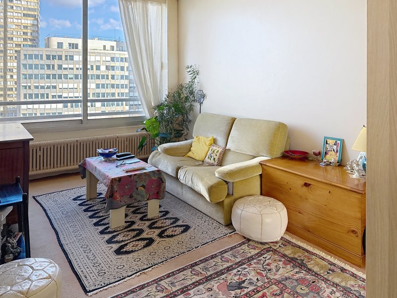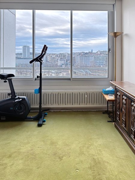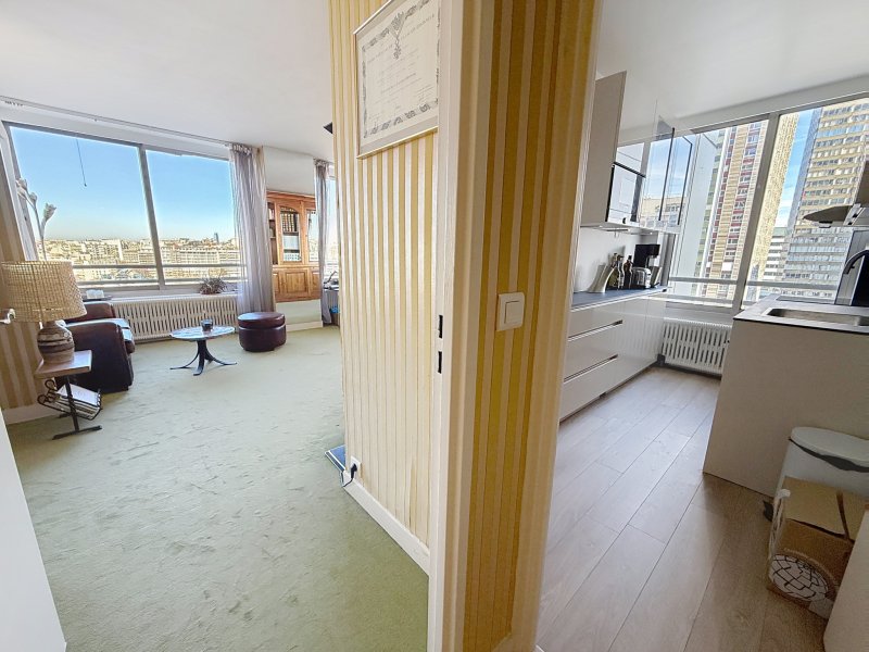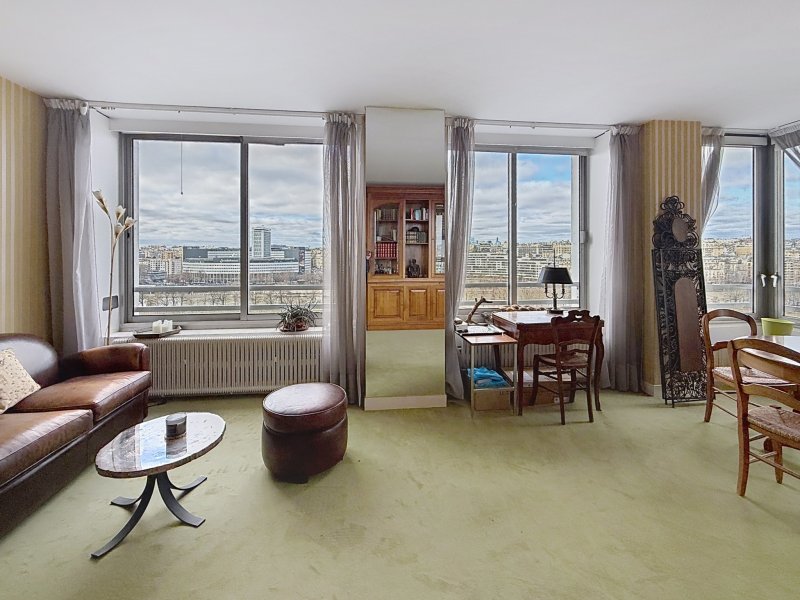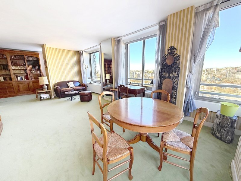 Paris XVo Face quai de Grenelle / Tour avant Seine / Mo Charles Michel Au 12ème étage avec ascenseurs vue panoramique sur Paris / Front de Seine LOT UNIQUE appartement 6 pièces de 108,03 m2 loi Carrez composé de: - 4 pièces de 73 m2 : double séjour avec grandes baies vitrées exposé ouest, 2 chambres, cuisine neuve équipée, salle de bains, dressing, WC séparé - 2 pièces 35 m2 occupé, bail 1989, loyer mensuel 550 EUR/ mois avec séjour, chambre, cuisine, salle de bains et WC Chauffage collectif CPCU : DPE classe E