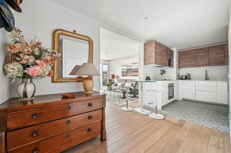 Engel & Völkers vous propose cet appartement clé en main de trois pièces, entièrement rénové en 2019, offrant de belles finitions, de nombreux rangements sur mesure et un plan parfaitement optimisé. Situé au 9? étage d'une résidence de standing, il bénéficie d'une vue dégagée sur la Seine, rare à Paris, sans aucun vis-à-vis.