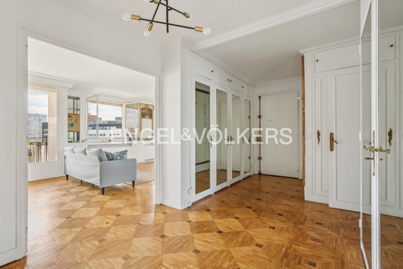 Au 6e étage d'un immeuble semi-récent (1957) avec ascenseur, Engel&Völkers vous présente cet appartement lumineux et traversant de 110,45m2 avec balcons. Il se compose d'une entrée avec rangements, d'un séjour baigné de lumière ouvert sur un large balcon (déjeuner familial possible), sans vis à vis avec vue Seine et un aperçu Tour Eiffel, de trois chambres avec balcon, une cuisine séparée, une salle de bain et un WC séparé.