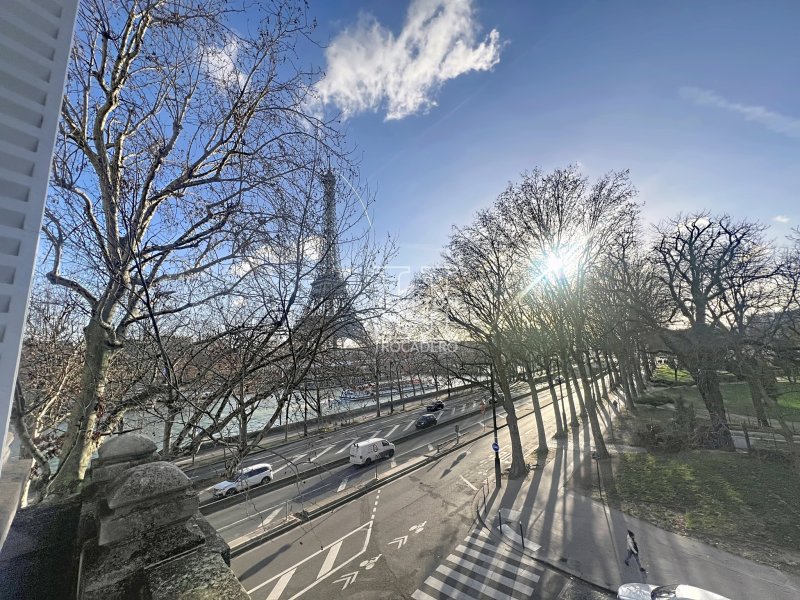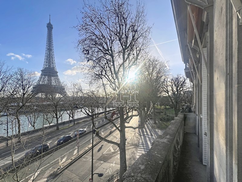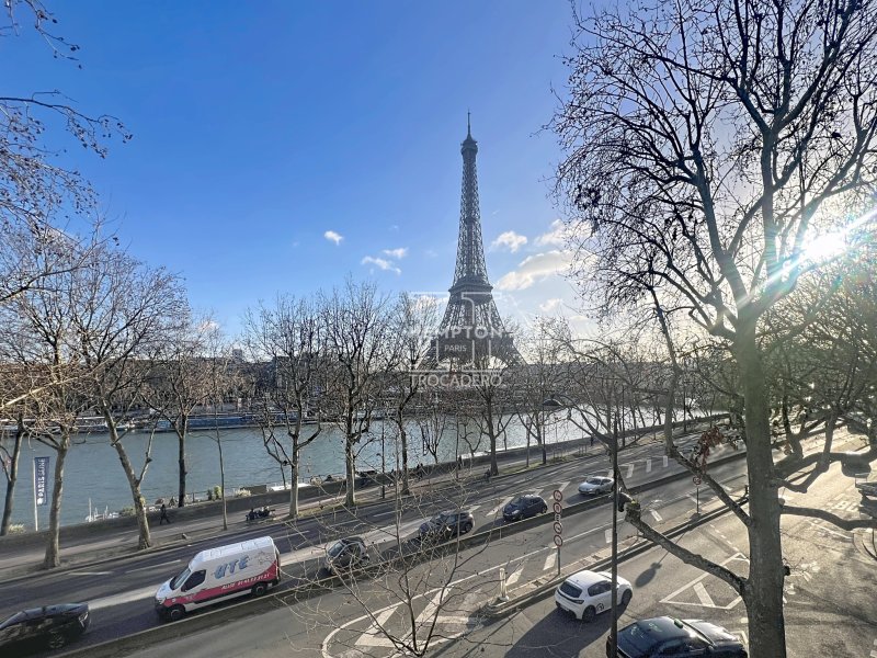 L'agence Hempton Paris Trocadéro a le plaisir de vous présenter ce somptueux appartement clé en main, situé au 2ème étage d'un élégant immeuble ancien. Entièrement refait à neuf avec des matériaux très haut de gamme, il est proposé meublé avec un raffinement absolu. Baigné de lumière grâce à son exposition sud-est, il offre une vue spectaculaire et totalement dégagée sur la Seine et la Tour Eiffel depuis toutes les pièces : séjour, cuisine et chambres. Le vaste séjour, véritable pièce de réception, séduit par ses volumes, ses cheminées et son balcon offrant une vue exceptionnelle sur la Seine et la Tour Eiffel dans son intégralité. La cuisine, entièrement aménagée et équipée, a été conçue sur mesure avec un électroménager haut de gamme, alliant design, confort et fonctionnalité. L'espace nuit comprend : Une magnifique suite avec dressing sur mesure et salle d'eau privative équipée de WC japonais, Une seconde chambre/bureau, actuellement aménagée en salle de sport. Le confort est absolu grâce au chauffage au sol et à la climatisation réversible dans l'ensemble de l'appartement. Chaque détail a été pensé pour offrir un art de vivre luxueux, moderne et sans compromis, tout en conservant le charme de l'ancien. Un bien rare et confidentiel, au coeur du Paris prestigieux, avec une vue iconique sur la Tour Eiffel et la Seine, destiné à une clientèle exigeante en quête d'excellence. Date du règlement de la copropriété : 01/01/1900 Nombre total de lots : 41 Lots principaux (habitations / commerces / bureaux) : 12 Lots d'habitation : 12