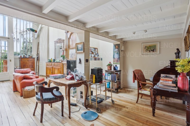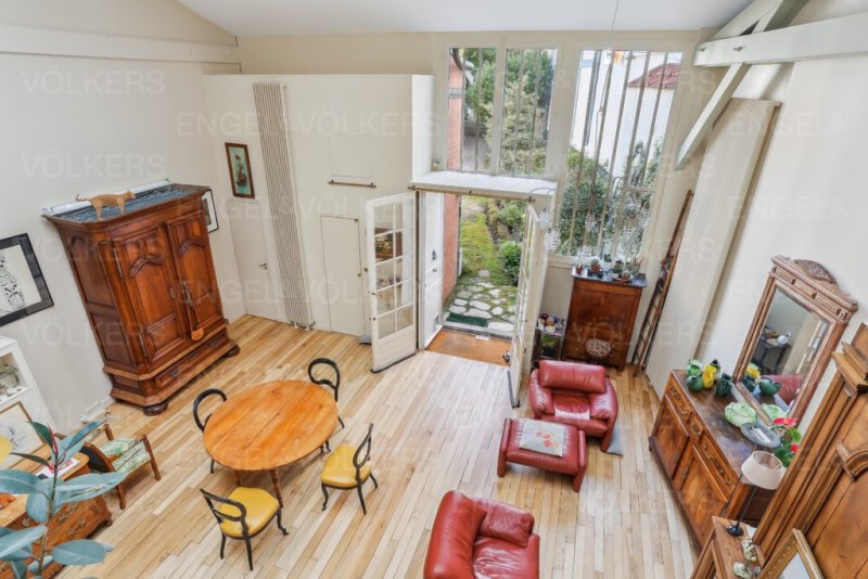 Atelier d'artiste au sein d'une petite copropriété composée de 6 ateliers et son jardin partagé, située dans une impasse privée au charme bucolique, à l'abri des regards et sécurisée avec un gardien à demeure.