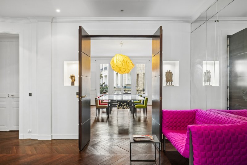 Traversant et exposé est-ouest, cet appartement bénéficie d'une belle luminosité, d'un environnement calme et ensoleillé, d'un balcon filant et d'une remarquable hauteur sous plafond d'environ 3,50 m.