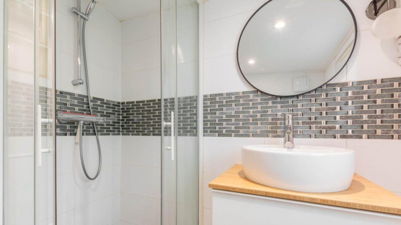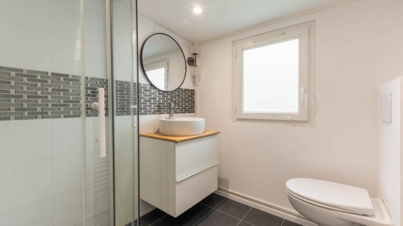 Un escalier discret vous mène à l'étage, où vous trouverez une salle d'eau moderne avec toilettes.