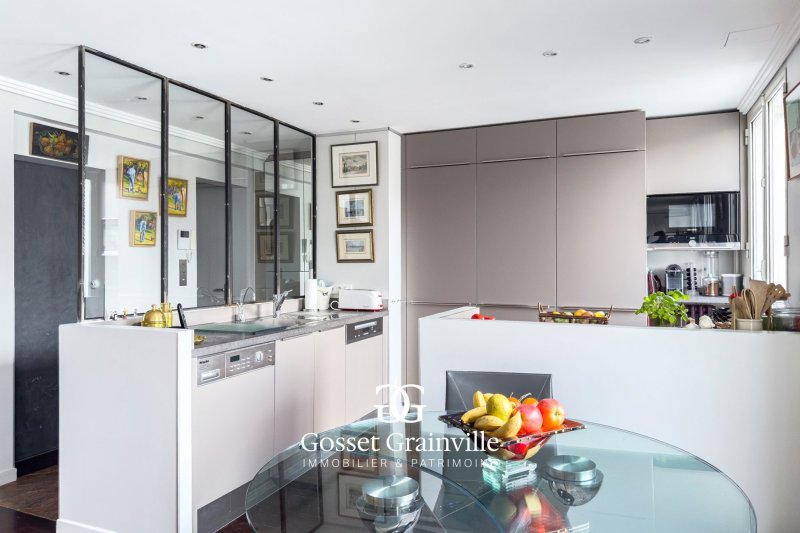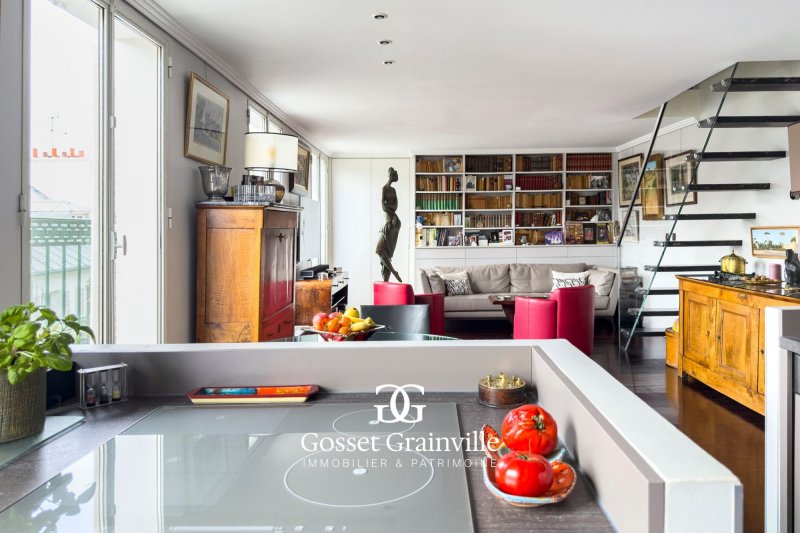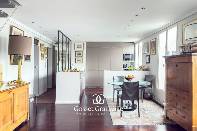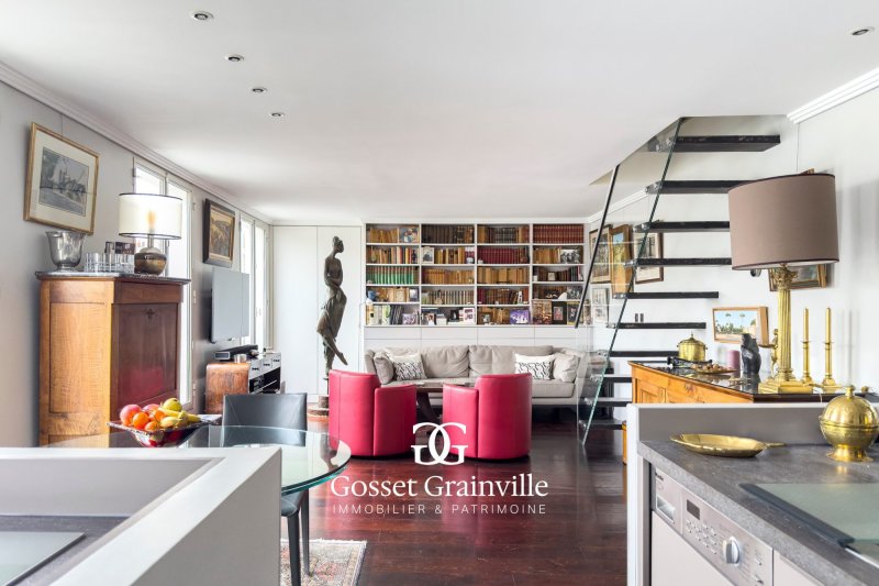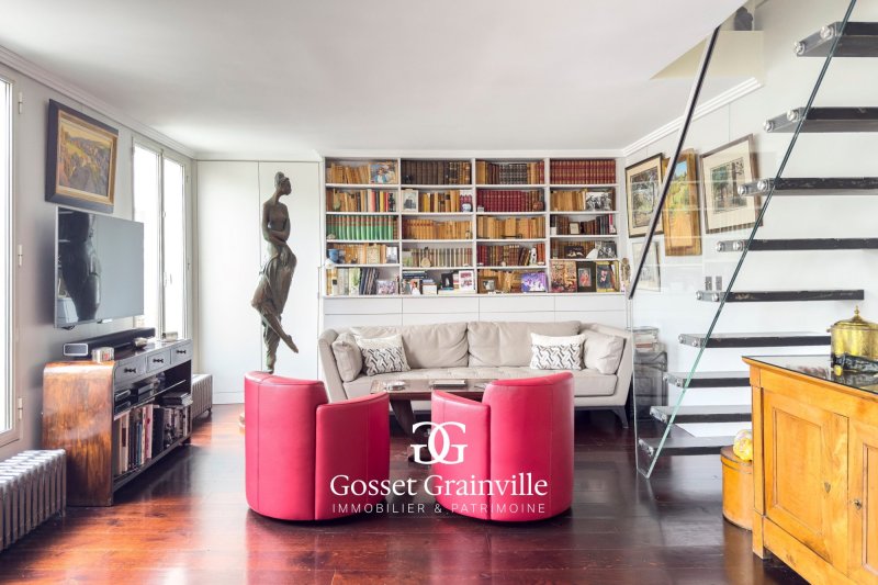 COEUR DES BATIGNOLLES DERNIER ETAGE avec ascenseur PARFAIT ETAT. Au sein d'une copropriété de bon standing de la fin du 19ème, à deux pas des commerces, Gosset Grainville Immobilier est heureux de vous présenter ce duplex de 67 m2, clé en mains. Situé aux 2 derniers étages (5ème et 6ème étage du bâtiment principal avec ascenseur jusqu'au 4ème), le duplex est organisé comme suit : au 5ème étage se trouve l'espace de réception de 41 m2 - ouvrant sur un balcon filant de près de 7 m2 - avec la cuisine ouverte, la salle à manger et le salon et un WC invités . au 6ème étage se trouvent la chambre en sous-pente, des rangements intégrés ainsi que la salle de bain (avec douche) et un second WC. La surface de l'espace nuit est de 26,29 m2 dont 11,81 au titre de la loi Carrez. Il a été aménagé avec goût (matériaux de qualité, bibliothèques sur-mesure) et est en excellent état d'usage. En complément : une mansarde au 6ème étage d'une surface de 9 m2, une grande cave saine de 6,5 m2. L'AVIS DE L'ÉQUIPE TRANSACTIONS : Un bien rare aux Batignolles, en raison de l'optimisation des surfaces en sous pente, de la présence d'un ascenseur et de la qualité de la copropriété. Honoraires inclus de 4% TTC à la charge de l'acquéreur. Prix hors honoraires 769 230 . Dans une copropriété de 48 lots. Quote-part moyenne du budget prévisionnel 3 230 /an. Aucune procédure n'est en cours. Classe énergie E, Classe climat E Montant estimé des dépenses annuelles d'énergie pour un usage standard : entre 1430.00 et 1990.00 sur les années 2021, 2022 et 2023 (abonnements compris). Les informations sur les risques auxquels ce bien est exposé sont disponibles sur le site Géorisques : georisques.gouv.fr. Votre conseiller Gosset Grainville Immobilier : Arnaud Vayssières Agent commercial (Entreprise individuelle)