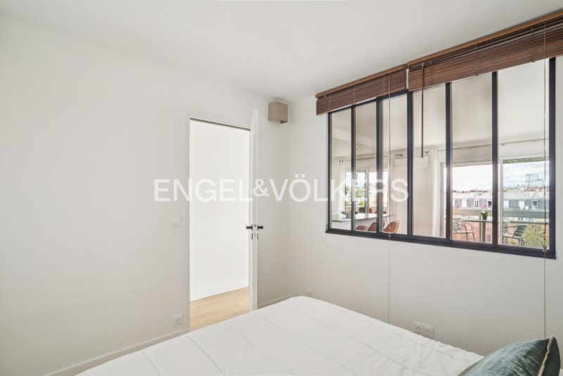Situé au 7ème avec ascenseur, ce bien rare de 54m² Carrez séduit par son balcon de 7m², offrant une vue imprenable sur un parc et les toits de Paris, sans aucun vis-à-vis. Un véritable havre de paix, baigné de lumière et au calme absolu.