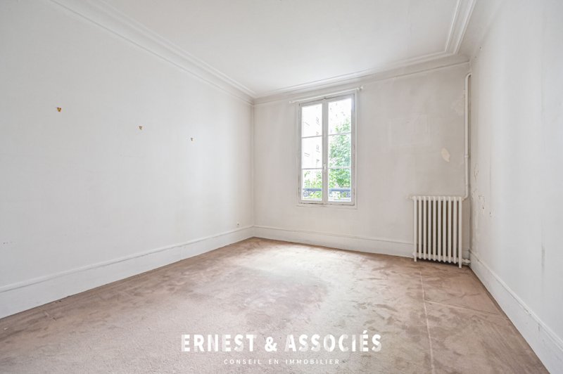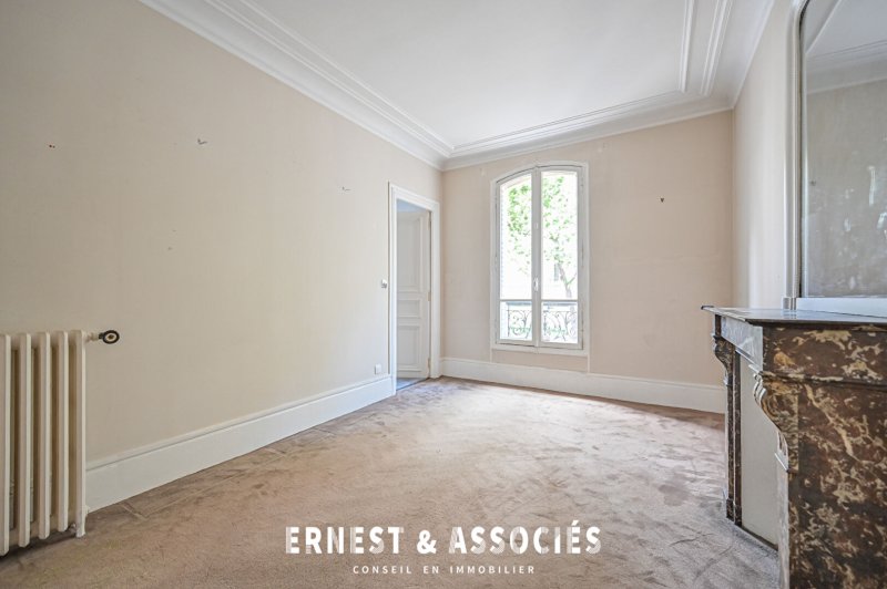 - Batignolles - Au 1er étage d'un bel immeuble d'angle en pierre de taille fraîchement ravalé, ERNEST , ASSOCIÉS vous propose un 3-4P à rafraîchir offrant un plan en étoile et ayant gardé tout le charme de l'ancien : parquet, moulures, cheminée. Ce bien est composé d'une entrée, un double séjour (salon / salle à manger), une cuisine indépendante, deux chambres, une salle de bains avec WC et un dressing. Une cave complète cet ensemble. Vous serez séduits par son plan optimisé, ses volumes et son charme. Proche de tous commerces, transports et du square des Batignolles.