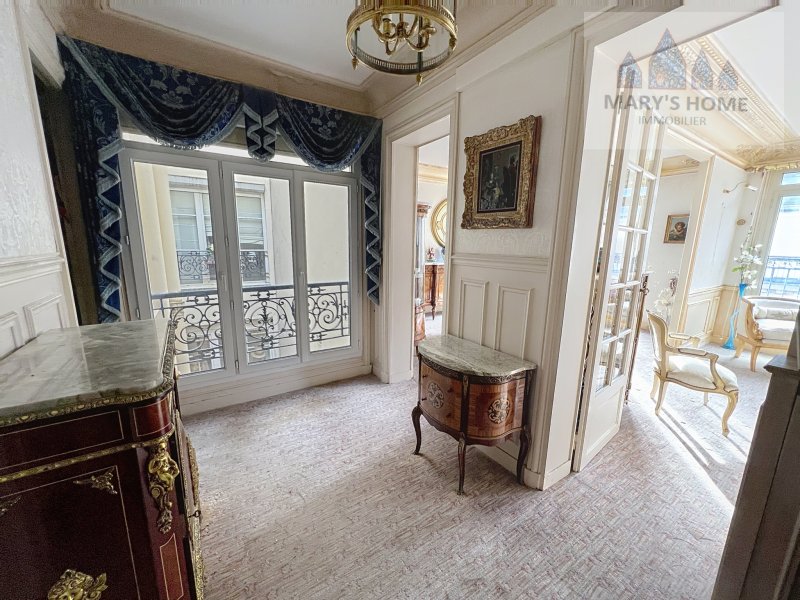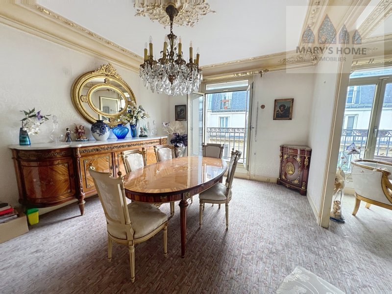 Bel Appartement de 4 pièces, 92.25 m2, idéalement situé au 5ème étage avec ascenseur dans un immeuble pierre de taille avec moulures et cheminées Il se compose d'une entrée, un double séjour luimineux 33.60 m2 avec balcon filant, une cuisine indépendante, 2 grandes chambres, une salle d'eau, une salle de bains, WC séparés, nombreux placards. A proximité du parc MONCEAU, et du lycée CARNOT, des commerces et transports Une cave complète ce bien